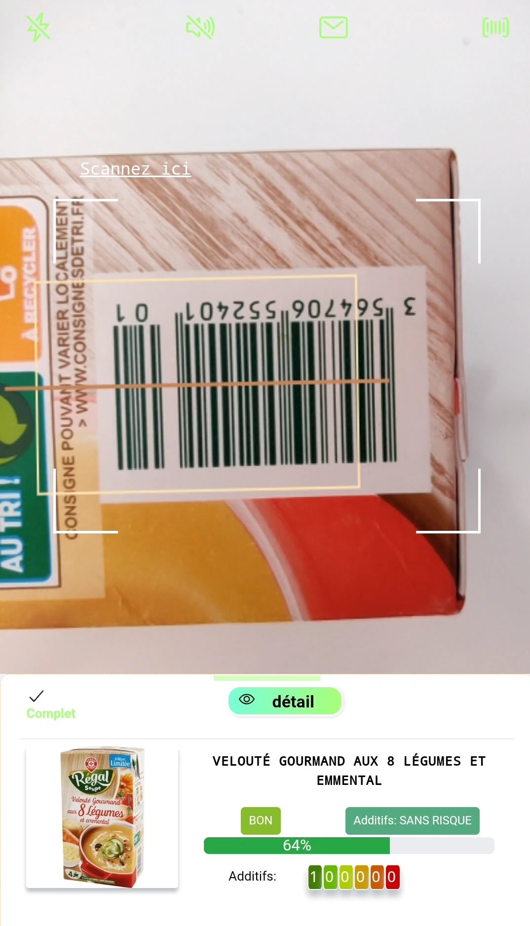 Scannez les produits par le biais de votre caméra, activez ou désactivez le son, les messages, le flash et contrôlez l'apparition du détecteur de code-barres sur le scanner !